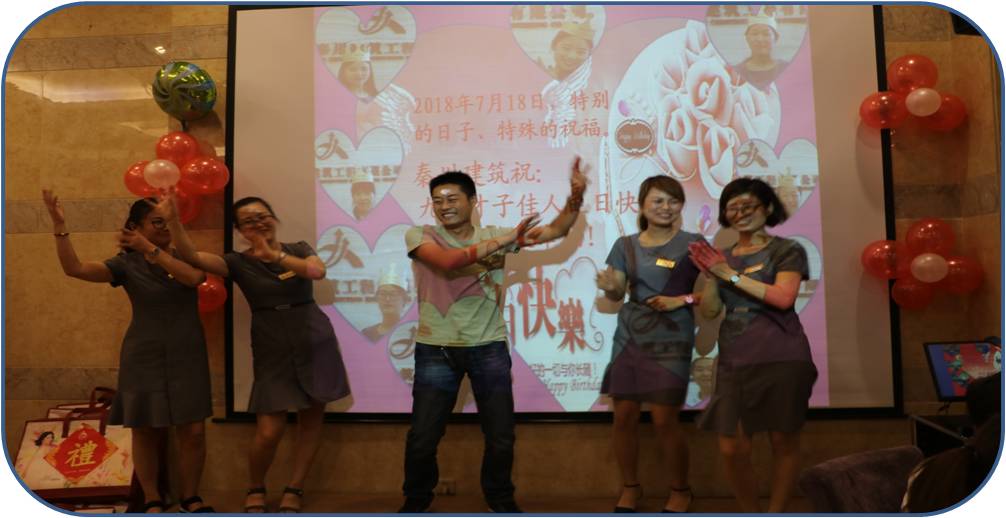 最后,由全體職員自發(fā)組織表演各類節(jié)目!現(xiàn)場氣氛愉快、融洽、幸福,一家人、一條心,生日宴會、共同幸福。