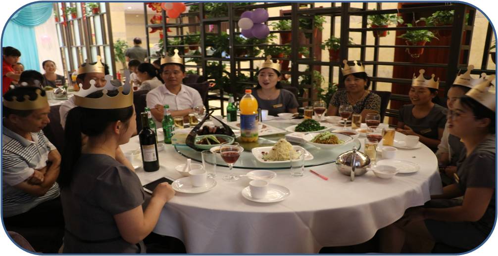 公司劉愛云總經(jīng)理親臨生日宴會現(xiàn)場,并代表公司為九位壽星員工致以誠摯的祝福,祝福壽星們生辰快樂、健康幸福。