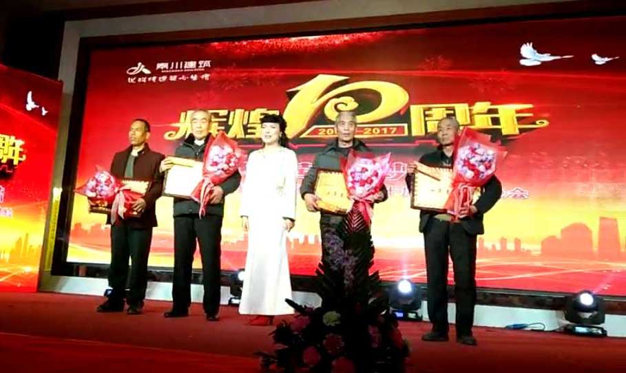 17:56慶典晚會(huì)拉開(kāi)帷幕,一番精彩的燈光秀和開(kāi)場(chǎng)舞后,全場(chǎng)觀眾凝神聚目觀看公司十年發(fā)展歷程記錄片,大家無(wú)不為之動(dòng)容,很多員工也紛紛落下了激動(dòng)的淚水。省建筑業(yè)協(xié)會(huì)徐會(huì)長(zhǎng)、原渭南技術(shù)學(xué)院黨委書(shū)記雷書(shū)記先后發(fā)表講話(huà),表達(dá)了對(duì)公司的祝賀及美好祝愿。田銀川董事長(zhǎng)向支持、關(guān)心公司發(fā)展的省、市建設(shè)主管部門(mén)、協(xié)會(huì)、合作單位、員工家屬、各介朋友及員工們表示了深切的感謝,并代表秦川公司全體員工鄭重宣布:將開(kāi)啟公司新的篇章,創(chuàng)造下一個(gè)更加輝煌的十年!讓員工們過(guò)上更加幸福小康的生活!晚會(huì)現(xiàn)場(chǎng),劉愛(ài)云總經(jīng)理為和公司一起成長(zhǎng)、做出貢獻(xiàn)的雷根緒、鈔永記、袁建忠、徐長(zhǎng)宏四名員工頒發(fā)了榮譽(yù)證書(shū)、獎(jiǎng)品。